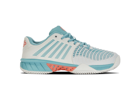 Der K-Swiss Express Light 3 ist ein moderner Tennis-Schuh, der in sorgfältig ausgewählten Farbkombinationen erhältlich ist. Das Design besticht durch eine dicke, robuste Sohle, die dem Schuh einen markanten Look verleiht. Die HB-Sohle ist speziell für Ascheböden, Kunstrasenplätze und Smash Courts entwickelt worden und sorgt dank tiefen Rillen im Fischgrätenmuster für maximalen Grip auf dem Spielfeld. Dies macht den Schuh ideal für Tennis-Spieler, die Stabilität und sicheren Halt benötigen. Der Schuh kombiniert Funktionalität und modernes Design optimal und ist in der Farbe Blanc de Blanc/Nile Blue/Desert Flower als Modell aus dem Jahr 2023 erhältlich.