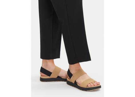 Die Keen Elle Backstrap ist eine sportliche Damen-Sandale, die sich durch ihren besonders leichten und komfortablen Schritt auszeichnet. Sie verfügt über dehnbare Träger, die zu 100 % aus recycelten PET-Kunststoffflaschen hergestellt sind, was den nachhaltigen Aspekt des Schuhs unterstreicht. Die Laufsohle ist mit Jute gefüllt, wodurch weniger Gummi verbraucht wird und somit die Umwelt geschont wird. Die EVA-Mittelsohle sorgt für ein leichtes Dämpfungsverhalten und angenehmen Tragekomfort. Die Gummi-Außensohle bietet hohe Griffigkeit und ist gleichzeitig nicht abfärbend, sodass keine Spuren hinterlassen werden. Für langanhaltenden Komfort gibt es eine EVA-Innensohle mit Fußgewölbeunterstützung. Das weiche Mikrofasermaterial im Innenfutter sorgt für ein angenehmes Tragegefühl. Zusätzlich enthält die Sandale recyceltes PET und nutzt eine spezielle Eco Anti-Odor Technologie, die auf natürliche Weise Gerüche kontrolliert. Das Obermaterial, die Fütterung und die Decksohle bestehen aus Textil, während die Laufsohle aus sonstigem Material gefertigt ist. Diese Sandale verbindet Umweltbewusstsein mit sportlicher Funktionalität und ist ideal für den Frühling und Sommer geeignet.