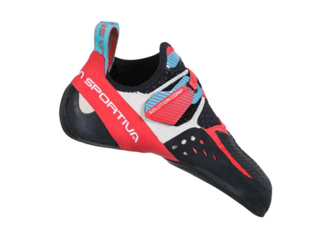 Der La Sportiva Solution Comp ist ein speziell für Frauen entwickelter Kletterschuh, der auf die hohen Anforderungen des Indoor-Kletterns sowie vielseitiger Kletterarten wie Bouldern und Mehrseillängenrouten ausgelegt ist. Er verfügt über das Lock Harness System, das eine optimale Unterstützung bei Haken, Einrissen und Vorsprüngen bietet. Das Obermaterial besteht aus strapazierfähigem und weichem Veloursleder kombiniert mit Mikrofaser. Der Schuh ist mit dem Randing System P3 ausgestattet, das Helix-Torsionsstabilität und Präzision gewährleistet. Die Gummisohle besteht aus Vibram XS Grip2 mit 3,5 mm Stärke und bietet herausragende Haftung. Ein enger Gummihals sorgt für eine optimale Fersenpassform. Speziell gestaltete Fersen- und Zehenhaken unterstützen hohe Leistungen beim Klettern. Das schnelle Schnürsystem (Fast Lacing System) ermöglicht eine präzise und schnelle Anpassung. Die anatomisch geformte Zwischensohle aus Hytrel unterstützt den Mittelfuß, während eine Pacific-Fütterung im Zehenbereich und ein Lycra-Schlaufe hohen Tragekomfort sicherstellen. Der Schuh bietet ein hohes Maß an Performance bei extremer Beanspruchung auf verschiedensten Kletterflächen.