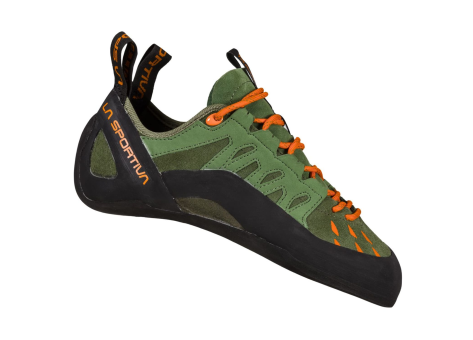 Der La Sportiva Tarantulace Kletterschuh ist eine moderne Variante des bewährten Tarantula-Modells und richtet sich speziell an Einsteiger sowie den Indoor-Klettereinsatz. Er bietet eine neutrale Passform, die durch eine schnelle und funktionelle Riemenschnürung eine individuelle Anpassung an verschiedene Fußtypen ermöglicht. Das Obermaterial kombiniert atmungsaktives, strapazierfähiges Material mit einem robusten Gummikleid, das den Fuß beim Klettern gut schützt und für Halt auf verschiedenen Oberflächen sorgt. Die Sohle ist speziell auf Kletteraktivitäten ausgerichtet und bietet optimalen Grip und Präzision. Die Kombination aus Komfort, Passform und Funktionalität macht den Schuh ideal für Mehrzweck-Klettern, sowohl am Felsen als auch in der Halle. Die Gestaltung zeigt ein ansprechendes Design in Grün mit kontrastierenden orangefarbenen Schnürsenkeln und schwarzen Details, typisch für La Sportiva. Insgesamt ist der Tarantulace ein praktischer, vielseitiger Kletterschuh, der durch seine Anpassungsfähigkeit und sein Handling auch für Anfänger und weniger erfahrene Kletterer perfekt geeignet ist.