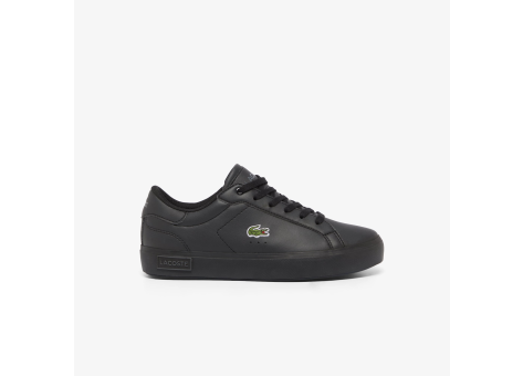 Der Lacoste Powercourt Kinder-Sneaker besticht durch sein schlichtes und zeitloses Design mit unkomplizierten Details, das sich ideal für Freizeitaktivitäten und den Alltag eignet. Der Schuh verfügt über atmungsaktive Perforationen, die für ein angenehmes Fußklima sorgen. Das klassische Lacoste-Branding mit dem bekannten Krokodil-Logo auf der Seite und einem gebrandeten Bereich an der Sohle unterstreicht die Markenidentität. Der Sneaker hat eine low-Silhouette und ist komplett in Schwarz gehalten, was ihn vielseitig kombinierbar macht. Das Material scheint robust und pflegeleicht zu sein, wobei keine spezielle Angabe auf Leder oder andere Materialien vorliegt. Die Schnürung sorgt für einen guten Sitz am Fuß. Insgesamt ist dieser Sneaker ein sportlich-eleganter Begleiter für Kinder, der Komfort und Stil vereint.