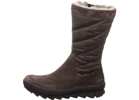 Der Legero Orthopädische Stiefel Novara für Damen ist in einem warmen Braunton gehalten und überzeugt mit einer hohen Schafthöhe, die guten Schutz und Wärme bietet. Das Obermaterial kombiniert weiches Wildleder mit hochwertigen Textileinsätzen, was für eine ansprechende Optik und angenehmen Tragekomfort sorgt. Innen ist der Stiefel mit einem kuscheligen, warmen Futter ausgestattet, das optimal für kältere Tage geeignet ist. Die robuste Profilsohle gewährleistet guten Halt auf verschiedenen Untergründen, besonders im Winter. Die seitlich angebrachten Reißverschlüsse erleichtern das An- und Ausziehen immens. Das Modell Novara von Legero ist orthopädisch konzipiert und unterstützt somit besonderen Komfort und Fußgesundheit. Ob für den Alltag oder längere Spaziergänge – dieser Stiefel bietet zuverlässige Wärme, Stabilität und Bequemlichkeit zugleich, ideal für Frauen, die Wert auf funktionale und zugleich modische Winterstiefel legen.