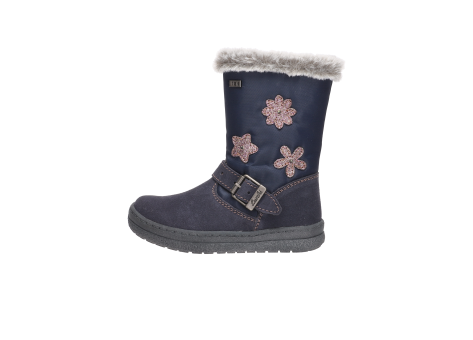 Der Lurchi ANIKA TEX ist ein idealer Schuh für die kalte Jahreszeit, ausgestattet mit einer Funktionsmembran, die bei extremen Witterungsbedingungen schützt und den Tragekomfort erhöht. Das Obermaterial besteht aus weichem dunkelblauem Rauleder kombiniert mit textilem Material. Im Inneren sorgt ein langes, sehr weiches Kunstfell für Wärme und Behaglichkeit. Die Textildecksohle unterstützt den angenehmen Tragekomfort zusätzlich. Die Laufsohle ist aus robustem Synthetik gefertigt und bietet guten Halt. Optisch fällt der Schuh durch eine blinkende Funktion in den Blumen- und Sternverzierungen an der Schaftrand auf, was ihm eine verspielte und kindgerechte Note verleiht. Der Schuh verfügt zudem über eine praktische Schnalle am Schaft, die für zusätzliche Stabilität sorgt. Insgesamt ist der Lurchi ANIKA TEX ein wärmender und wetterfester Kinderschuh, der besonders für die kalte Jahreszeit geeignet ist.