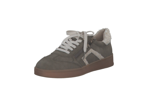 Der Marco Tozzi 23778 Schnürer ist ein Damen-Schuh in Grau, Größe 42 EU, aus der Serie MT Feel Me. Der Schuh ist ein lässiger Sneaker mit Schnürung und seitlichem Reißverschluss für einfaches An- und Ausziehen. Auffällig ist die warme, flauschige Fütterung am Schuhkragen, die besonders an kälteren Tagen für angenehmen Komfort sorgt. Die Sohle ist flach und bietet guten Halt, ideal für den Alltag. Das Design verbindet sportlichen Look mit einem modischen Element durch die kontrastierende Fütterung und die sorgfältigen Details. Der Schuh eignet sich durch das Material und die Konstruktion gut für gemäßigte Wintertage. Insgesamt bietet der Schuh Komfort, Wärme und modernes Design für Damen, die Wert auf Funktionalität und Stil legen.