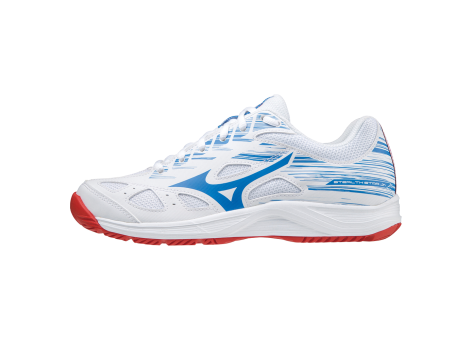 Der Mizuno Stealth Star Jr. ist ein leichter und vielseitiger Hallenschuh, der hohe Ansprüche an Grip und Stabilität erfüllt. Er eignet sich ideal für junge Spieler, die einen Schuh mit einer weichen und reaktionsfähigen Zwischensohle suchen. Die Außensohle ist komplett flach gestaltet, was ein erhöhtes Maß an Stabilität bietet, während die abgerundete Form ein sanftes Aufsetzen der Ferse ermöglicht. Durch die reduzierten Gummianteile an der Sohle wird das Gewicht des Schuhs deutlich verringert, ohne dass die Flexibilität im Vorfußbereich eingeschränkt wird. Die Flexkerben, beziehungsweise glatten Biegerillen an der Außensohle, sorgen für optimale Beweglichkeit bei schnellen Richtungswechseln. Die Farbkombinationen sind variabel, unter anderem in Weiß mit Akzenten in Feuerrot und Französisch Blau erhältlich. Insgesamt bietet dieser Schuh einen idealen Mix aus Leichtigkeit, Flexibilität und Stabilität für den Hallensport, besonders geeignet für junge Athleten, die eine hohe Performance auf dem Hallenboden erreichen möchten. Das Modell stammt aus dem Hause Mizuno, einem bekannten Hersteller im Bereich Sportschuhe und -ausrüstung.