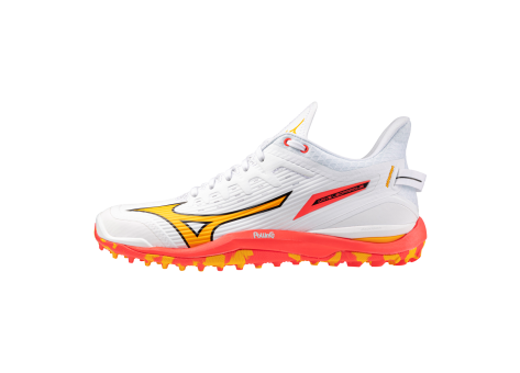 Der Mizuno WAVE LEOPARDUS ist ein speziell für schnelle Spieler im Feldhockey entwickelter Schuh, der maximale Geschwindigkeit und Agilität ermöglicht. Das Obermaterial bietet starken strukturellen Halt, während die Kombination aus PoWnCe und MIZUNO ENERZY in der Zwischensohle eine hohe Reaktionsfähigkeit und eine dynamische Energierückgabe unterstützt. Die Mizuno Wave-Technologie sorgt zudem für eine effiziente Dämpfung, die Bewegungen flüssiger macht. Die DFlex Groove-Sohle unterstützt eine unvergleichliche Beschleunigung, die die natürliche Fußbewegung nachahmt. Die innovative Bootie-Konstruktion mit getrennten Stretch-Innen- und Außenschichten garantiert eine hervorragende Passform, die sich individuell an die Fußkontur anpasst. Dadurch bietet der Schuh optimalen Komfort und Stabilität bei schnellen Richtungswechseln und intensiver Bewegung auf dem Spielfeld. Die leuchtenden Farben und das dynamische Design verleihen dem Schuh einen sportlichen Look.