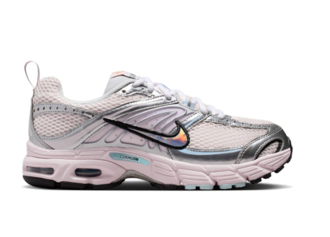 Der Nike Air Max Moto 2K Pearl Metallic Silver ist ein moderner Damensneaker, der durch sein stylisches Design mit weißen, perlmuttfarbenen und metallisch-silbernen Akzenten auffällt. Das Obermaterial besteht aus atmungsaktivem Mesh, ergänzt durch synthetische Overlays für zusätzliche Stabilität und ein trendiges Aussehen. Die charakteristische sichtbare Air-Max-Dämpfung in der Sohle sorgt für exzellenten Komfort und stoßdämpfende Eigenschaften, ideal für den Alltag. Die Zwischensohle ist mit Cushlon-Schaum ausgestattet, was das Laufgefühl weiter verbessert. Dank der robusten Gummi-Außensohle bietet der Schuh guten Halt auf verschiedenem Untergrund. Insgesamt verbindet dieser Sneaker Komfort und modisches Design, was ihn zu einem vielseitigen Begleiter für Casual-Styles macht. Der Schuh ist Teil der berühmten Nike Air Max Linie und begeistert insbesondere Fans markanter Sportschuh-Ästhetik.