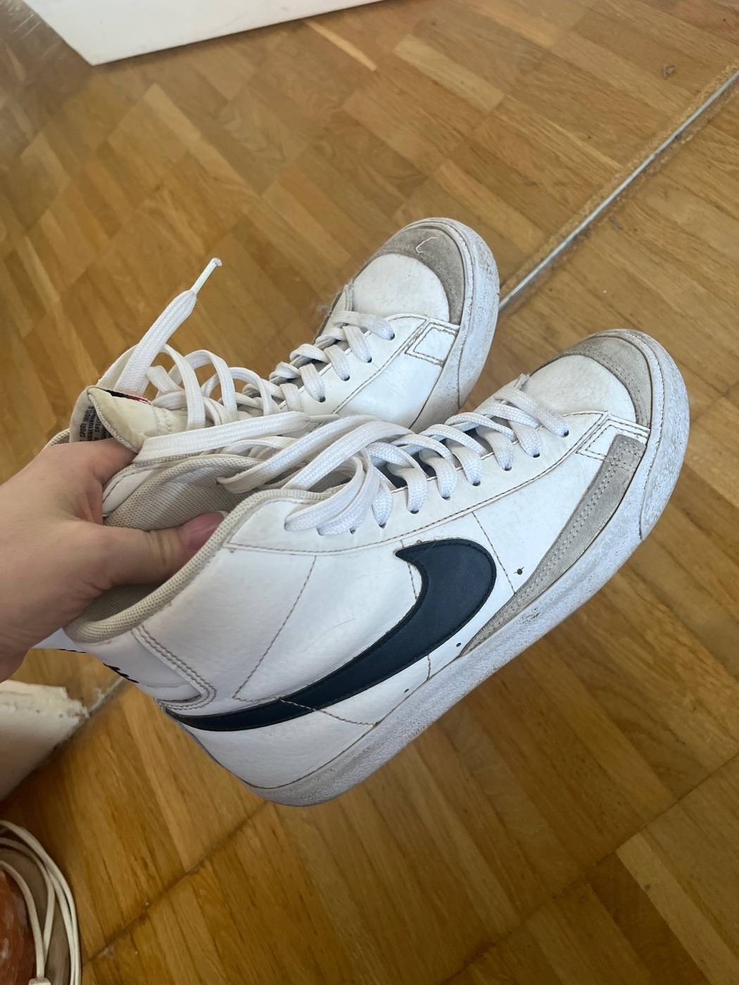 Mir gefallen die Nike Blazer sehr gut, der Vintage Style sieht sehr gut aus. Leider sind die Schuhe schwer anzuziehen, da sie so hoch sind, aber mit diesem Problem kann man leben! Meinen Erfahrungen zufolge fallen die Schuhe etwas kleiner aus als zu erwarten. Trage eine Schuhgröße größer als normal.Vorteile: sehr schön, sehr bequem