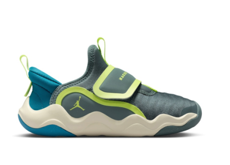 Der NIKE JORDAN 23 7.2 EasyOn Hasta Sea Glass Light Lemon Twist (PS) ist ein moderner Sneaker mit einem ausgefallenen Design und hochwertiger Verarbeitung. Der Schuh präsentiert sich in einer Kombination aus subtilen Blau- und Grüntönen, kombiniert mit einem leuchtenden Zitronengelb als Akzentfarbe, die dem Modell einen frischen und dynamischen Look verleiht. Die markante, wellenförmige Sohlenkonstruktion sorgt für einen auffälligen Auftritt und hohen Komfort bei jeder Bewegung. Dank des verschlusslosen Easy-On-Konzepts lässt sich der Schuh besonders leicht an- und ausziehen, was insbesondere für Kinder optimal ist. Der Sneaker trägt das ikonische Jordan-Logo, das für Qualität und Stil steht. Die Materialien wirken flexibel und atmungsaktiv, was für angenehmen Tragekomfort im Alltag sorgt. Dieser Sneaker eignet sich ideal für den täglichen Gebrauch und passt zu sportiven wie casual Outfits. Er verbindet Style und Tragekomfort und repräsentiert die legendäre Jordan-Linie in einer jüngeren, frischen Version.