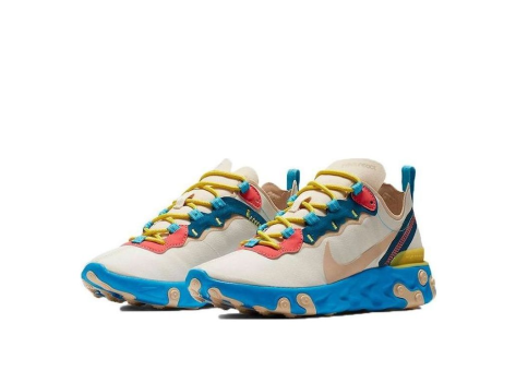Der Nike React Element 55 für Damen kombiniert stilvolles Design mit hohem Tragekomfort. Das minimalistische Obermaterial in hellen Tönen wie Light Cream und Desert Ore macht den Sneaker zu einem vielseitigen Begleiter für den Alltag oder Spaziergänge in der Stadt. Die innovative Nike React-Dämpfung sorgt für weiche, reaktive Schritte und erhöht den Komfort bei jeder Bewegung. Das Modell zeichnet sich durch seine modische Farbgebung und eine markante blaue Sohle mit gelben und roten Akzenten aus, die zusätzlich optisch auffällt. Der Schuh bietet eine moderne Passform und richtet sich an Frauen, die Wert auf eine Kombination aus Eleganz und Bequemlichkeit legen. Er ist ein Must-Have für jede Frau, die modische Akzente setzen möchte und dabei auf Komfort nicht verzichten will.
