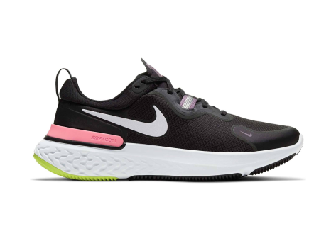 Der Nike React Miler für Damen ist ein moderner Laufschuh, der besonders durch seine Kombination aus Komfort und Stabilität überzeugt. Das Obermaterial besteht aus atmungsaktivem Mesh, das für eine gute Belüftung des Fußes sorgt. Die React-Schaumstoffsohle bietet eine reaktionsfreudige Dämpfung, die Stöße effektiv absorbiert und ein angenehmes Laufgefühl gewährleistet. Die Außensohle ist mit robustem Gummi versehen, der für optimale Traktion und Langlebigkeit sorgt, was den Schuh ideal für unterschiedliche Laufstrecken macht. Das Design besticht durch eine Kombination aus Schwarz, Akzenten in Sunset Pulse Pink und Lime Green, was dem Schuh einen sportlich-frischen Look verleiht. Die Schnürung sorgt für eine sichere Passform, während ein Zuglasche an der Ferse das An- und Ausziehen erleichtert. Insgesamt ist der Nike React Miler ein leichter, stabiler und vielseitiger Laufschuh, der sich hervorragend für Laufbegeisterte eignet, die Wert auf Komfort und Stil legen.