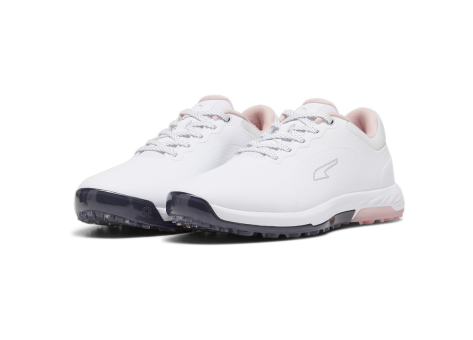 Der PUMA Alphacat Nitro ist ein hochwertiger Golfschuh, der für Komfort und Leistung auf dem Platz entwickelt wurde. Er verfügt über die fortschrittliche NITRO Dämpfungstechnologie, die mit Stickstoff versetzten Schaumstoff nutzt, um eine außergewöhnliche Reaktionsfähigkeit und ein federleichtes Tragegefühl zu bieten. Das EXOSHELL Obermaterial macht den Schuh bis zu einem Jahr wasserabweisend, schützt somit vor Witterungseinflüssen und sorgt für Langlebigkeit. Für optimale Stabilität und Kontrolle sorgt der geformte TPU-Rand, der auf weichem Untergrund hervorragenden Halt und die nötige Torsionssteifigkeit für den Golfschwung garantiert. Die ENR Gummilaufsohle sorgt mit der tour-getesteten ALPHACAT Traktion für sicheren Grip auf verschiedenen Oberflächen vom Fairway bis ins Rough. Diese Vielseitigkeit macht den Schuh zu einem zuverlässigen Begleiter für lange Golfrunden mit höchstem Komfort und Stabilität. Die farbliche Gestaltung in Weiß mit dezenten Akzenten rundet das moderne und sportliche Design ab.