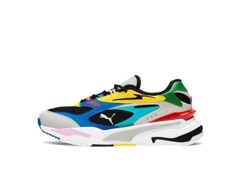 Der PUMA RS Fast für Kinder ist ein auffälliger Sneaker mit niedrigem Schaft und einem farbenfrohen Design, das an internationale Flaggen erinnert. Der Schuh kombiniert verschiedene Farben wie Grün, Gelb, Blau, Schwarz, Rot und weitere Akzente, wodurch er sehr lebendig wirkt. Der Sneaker ist mit einer gepolsterten Innensohle und einer strukturierten Gummilaufsohle ausgestattet, die für Komfort und guten Halt sorgt. Ideal geeignet für den Alltag und sportliche Freizeitaktivitäten bietet der Schuh eine modische sowie funktionale Wahl für aktive Kinder. Die Verarbeitung ist hochwertig, was für Haltbarkeit und Unterstützung beim Tragen spricht. Der PUMA RS Fast ist ein moderner, stylischer Kinderschuh, der sowohl durch seine Optik als auch durch seinen Tragekomfort überzeugt.