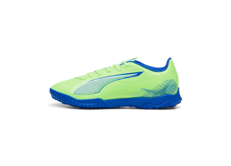 Die PUMA Ultra 5 Play TT Fußballschuhe sind speziell für den Einsatz auf harten Naturböden und Kunstrasen (2G) konzipiert. Sie verfügen über ein robustes, leichtes synthetisches Obermaterial mit einem geprägten Stützrahmen, der Stabilität verleiht. Das Obermaterial besteht zu mindestens 20 % aus recycelten Materialien, was einen nachhaltigen Aspekt darstellt. Die dünne Gummilaufsohle mit Multinoppen sorgt für erstklassige Traktion und Grip auf allen Hartplätzen. Die Schuhe besitzen eine reguläre, niedrige Zungenkonstruktion sowie eine normale bis schmale Passform und bieten somit Komfort für verschiedene Fußformen. Ein gepolsterter Kragen verbessert zusätzlich den Halt und das Fußklima wird durch das textile Futter angenehm gestaltet. Die Schuhe sind mit Puma-typischem Design, inklusive Formstrip und Logo, ausgestattet und bieten eine Kombination aus Geschwindigkeit, Beschleunigung, Halt und Ballgefühl durch die GripControl-Haut. Insgesamt sind die Ultra 5 Play TT ideal für schnelle, wendige Fußballspieler, die auf künstlichen und festen Böden spielen möchten.