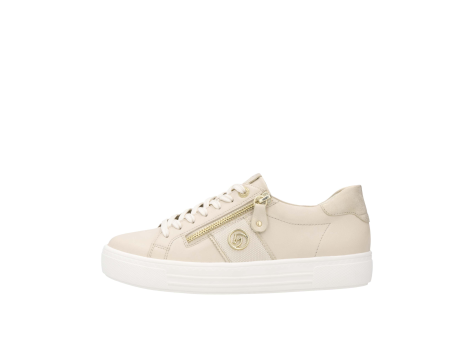 Der remonte Sportliche Schnürer D0919-60 ist ein vielseitiger Sneaker für den Alltag. Gefertigt aus hochwertigem Glattleder in einem gedeckten Beigeton, bietet er eine komfortable Passform und ist auch in Übergrößen erhältlich. Besonders praktisch ist die Kombination aus Schnürung und seitlichem Reißverschluss, die ein einfaches An- und Ausziehen ermöglicht. Die Innensohle ist gepolstert und herausnehmbar, was die Pflege erleichtert und individuellen Komfort unterstützt. Die ultraleichte Laufsohle sorgt für ein angenehmes Tragegefühl, während das leichte Innenfutter aus Microvelour zusätzlichen Komfort garantiert. Die komfortable Weite sorgt dafür, dass der Vorfußbereich genügend Platz hat. Diese Sneaker sind ein perfekter Begleiter für zahlreiche Gelegenheiten und kombinieren stilvolles Design mit funktionalen Details.