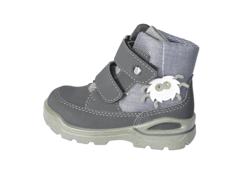Der Ricosta JAN Kinderstiefel in Grau ist speziell für Kinderfüße gestaltet und in der Größe 28 EU erhältlich. Der Schuh verfügt über eine robuste, feste Sohle mit guter Profilierung, die auch bei herbstlichem Wetter stabilen Halt bietet. Die Kombination aus Glatt- und Textilmaterial sorgt für strapazierfähigen und zugleich weichen Tragekomfort. Praktische Klettverschlüsse erleichtern das An- und Ausziehen, wodurch die Unabhängigkeit der jungen Träger gefördert wird. Das Modell zeigt eine liebevoll gestaltete Spinnen-Applikation an der Seite, die dem Schuh eine spielerische und kindgerechte Optik verleiht. Die leichte Polsterung am Schaft schützt das Fußgelenk und sorgt für eine angenehme Passform. Insgesamt ist der Ricosta JAN ein funktionaler und modischer Begleiter für Kinder in der Übergangszeit und kühleren Monaten, optimal für den Alltag und den Spielplatz geeignet.
