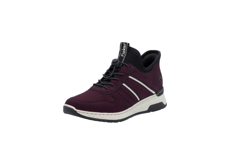 Der Rieker HWK Kurzstiefel in Dunkelrot ist ein Schuh, der durch seine Anflechter-Machart besonders robust und durch die biegsame Sohle flexibel ist. Er besitzt eine sehr leichte, schockabsorbierende Sohle mit einem Keilabsatz, die für angenehmen Tragekomfort sorgt. Das Modell ist ohne Verschluss ausgestattet und kann dank der Ready2GO Hineinschlüpf-Funktion schnell an- und ausgezogen werden. Der Schuh ist in Komfortweite geschnitten, sodass ausreichend Raum für die Füße gegeben ist. Die gepolsterte und herausnehmbare Einlegesohle erhöht zudem den Komfort bei jedem Schritt. Insgesamt bietet der Schuh eine Kombination aus leichtem Tragegefühl, robustem Material und praktischem Design, das sich ideal für den Alltag eignet.