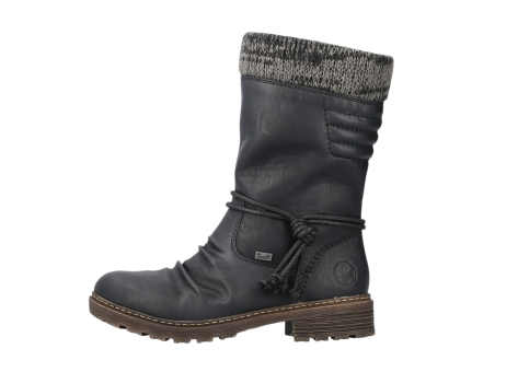 Die Rieker Z4755-00 Kurzstiefel für Damen sind tiefschwarz und verbinden coolen, lässigen Stil mit hoher Funktionalität. Sie verfügen über einen praktischen Reißverschluss, der das An- und Ausziehen erleichtert. Der Schaftkragen in Strick-Optik verleiht dem Schuh einen besonderen Look. Die Sohle ist rutschfest und bietet durch den Blockabsatz mit einer Höhe von 38 mm guten Grip und Stabilität. Für langanhaltenden Kälteschutz sorgt die flauschige Warmfütterung, während das wasserabweisende Obermaterial mit RiekerTEX-Membran vor Nässe und Wind schützt. Die Decksohle ist extra weich, was den Tragekomfort erhöht. Das Obermaterial besteht aus Kunstleder, das Innenfutter ist mit Warmfutter ausgestattet, und die Sohle besteht aus robustem TR-Material. Mit einer Schafthöhe von 26 cm und einer normalen Weite sind sie bequem zu tragen. Erhältlich sind diese Stiefel in den Größen EU 38 bis 42. Diese Kurzstiefel sind ideal für kalte Tage und vielfältige Anlässe im Alltag.