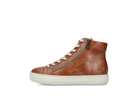 Der Rieker Schnürstiefel L9880-24 für Damen präsentiert sich in einem braunen Farbton und ist in der EU-Größe 43 erhältlich. Der Schuh zeichnet sich durch eine Kombination aus Schnürsenkeln und einem seitlichen Reißverschluss aus, was das An- und Ausziehen erleichtert. Die Sohle ist weiß und verleiht dem Schuh eine sportlich-legere Optik, während das Obermaterial aus einem hochwertigen, wohl pflegeleichten Material besteht, das Stabilität und Komfort bietet. Der Stiefel besitzt eine mittelhohe Silhouette, die guten Halt und Schutz im Knöchelbereich bietet. Das Design verbindet klassischen Stil mit modernem Komfort und ist somit ideal für den Alltag geeignet, besonders in der Übergangs- und kühleren Jahreszeit. Rieker ist bekannt für bequeme Schuhe, die Wert auf Funktionalität und modisches Aussehen legen. Somit eignet sich dieser Schnürstiefel besonders gut für Casual- und Freizeitaktivitäten, bei denen Style und Tragekomfort gleichermaßen gefragt sind.