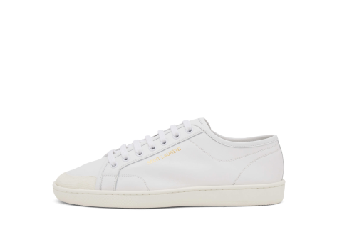 Der Saint Laurent SL39 Greenwich ist ein eleganter Sneaker aus glattem Leder, der durch seine hochwertige Verarbeitung besticht. Das Obermaterial besteht aus feinem Leder, das eine glatte Oberfläche bietet und Komfort sowie Strapazierfähigkeit gewährleistet. Auffällig sind die goldfarbenen Schriftzüge an der Seite, die dem Schuh eine luxuriöse Note verleihen. Die Schuhspitze ist kontrastierend gestaltet, was dem klassischen Design eine moderne und stilvolle Akzentuierung verleiht. Für optimalen Halt und einen sicheren Sitz sorgt die Schnürung, die auch eine individuelle Anpassung ermöglicht. Die flache Gummisohle bietet eine gute Bodenhaftung und sorgt für einen bequemen Schritt bei jedem Auftreten. Diese Kombination macht den SL39 Greenwich zu einem vielseitigen Begleiter für den Alltag, der sowohl modisch als auch funktional überzeugt. Der Sneaker eignet sich hervorragend für legere Anlässe und ergänzt verschiedene Outfits mit einem zeitlosen, modernen Flair. Die Marke Saint Laurent steht dabei für höchste Qualität und exklusives Design.