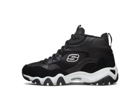 Der Skechers DLites 2.0 Sport Shoe in Schwarz (Modellnummer 999324-BLK) ist ein sportlich inspirierter Schuh mit einem auffälligen Design. Er verfügt über eine robuste, wadenhohe Silhouette mit einer markanten, wellenförmigen Sohle, die für guten Halt sorgt. Das Obermaterial kombiniert unterschiedliche Texturen und Materialien, wodurch der Schuh optisch abwechslungsreich und modern wirkt. Die Schnürung ermöglicht eine individuelle Anpassung an den Fuß. Das Logo von Skechers ist seitlich gut sichtbar angebracht und unterstreicht die Markenidentität. Die Zwischensohle ist weiß und bietet eine Kontrastfarbe zum schwarzen Obermaterial, was die sportliche Note des Schuhs verstärkt. Der Schuh eignet sich vor allem für den Alltag und Freizeitaktivitäten, wobei er durch seine stabile Bauweise auch bei sportlichen Aktivitäten bequem getragen werden kann. Insgesamt vereint der DLites 2.0 Komfort und Stil zu einem trendigen Sneaker, der sowohl modische als auch funktionelle Ansprüche erfüllt.
