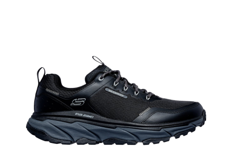 Der Skechers DLux Journey - Slate Peak ist ein robuster, veganer Outdoorschnürschuh, der Komfort und Stil vereint. Das Obermaterial besteht aus einem geräumigen Ripstop-Stoff mit Hotmelt-Überzügen und bietet dank der wasserdichten Eigenschaften zuverlässigen Schutz bei Outdoor-Abenteuern. Mit der Skechers Waterproof Relaxed Fit® Passform sorgt der Schuh für eine bequeme, lockere Passform. Die Innensohle aus Air-Cooled Memory Foam® garantiert angenehmen Komfort und unterstützt die Dämpfung bei längeren Tragezeiten. Die Skechers Breathe Easy Technology™ sorgt zudem für trockene Füße, indem sie die Atmungsaktivität fördert. Die Sohle des Schuhs ist robust und verfügt über ein griffiges Profil, das sicheren Halt auf verschiedenen Untergründen bietet. Insgesamt eignet sich der DLux Journey ideal für Outdoor-Aktivitäten und lange Tage in der Natur, wobei er durch seine wasserabweisenden und atmungsaktiven Eigenschaften überzeugt. Die Farbgebung in Schwarz/Grau unterstreicht den funktionalen und dennoch modischen Auftritt des Schuhs.