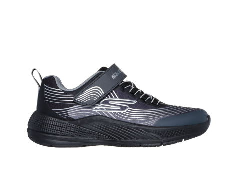 Der Skechers Microspec Advance ist ein sportlicher und vielseitiger Sneaker für Kinder in der Farbe Schwarz mit silbernen Akzenten. Das Obermaterial besteht aus atmungsaktivem Mesh mit einem haptischen Print-Overlay, was für eine moderne und ansprechende Optik sorgt. Die Stretch-Schnürung ermöglicht eine flexible Anpassung, während der praktische Klettverschluss ein einfaches An- und Ausziehen sowie eine individuelle Passform ermöglicht. Im Inneren bietet eine gepolsterte Komfort-Innensohle angenehmen Tragekomfort. Die Laufsohle ist flexibel und sorgt dank des EVA-Materials für gute Dämpfung und Stabilität. Der Sneaker hat einen Low-Cut-Schnitt, der unter dem Knöchel endet und ist dadurch besonders leicht und bequem. Die Schuhe sind maschinenwaschbar und somit leicht pflegbar. Mit einer Absatzhöhe von 2,5 cm bieten sie eine moderate Erhöhung. Das Modell richtet sich an aktive Kinder und verbindet modernen Streetstyle mit praktischem Komfort. Die Marke Skechers steht für innovative und komfortable Freizeitschuhe, die perfekt für den Alltag und Freizeitaktivitäten geeignet sind.
