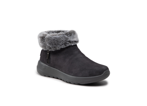 Der Skechers On The Go Joy - Savvy Stiefel ist ein knöchelhoher Kaltwetterstiefel im Chukka-Boot-Design, der Komfort und Stil miteinander vereint. Das Obermaterial besteht aus weichem Veloursleder, das mit 3M Scotchguard behandelt wurde, um wasser- und schmutzabweisend zu sein. Ein weicher Kunstpelzbesatz am Kragen sorgt für zusätzlichen kuscheligen Tragekomfort. Ausgestattet ist der Stiefel mit einer innovativen 5GEN® Zwischensohle, die eine extrem reaktive Dämpfung bietet, sowie einer neuen Skechers Air Cooled Goga Mat® Einlegesohle, die für zusätzliche Dämpfung und Halt sorgt. Die Sohle wurde für einen stabileren Halt und verbesserte Polsterung optimiert. Ein durchgängiger Seitenreißverschluss erleichtert das An- und Ausziehen, während das abgeschrägte Mittelfußdesign die Mittelfußunterstützung verbessert. Mit einem Gewicht von lediglich 234 Gramm (pro Schuh in Größe 37) überzeugt der Stiefel sowohl durch Leichtigkeit als auch Funktionalität. Das weiche Chenille-Futter hält die Füße angenehm warm und macht den Schuh ideal für kalte Wetterbedingungen. Insgesamt ist dieser Stiefel eine Kombination aus innovativer Technologie und attraktivem Design, die besonders für gemütliche Outdoor-Walkings und den täglichen Gebrauch in der kühleren Jahreszeit geeignet ist.