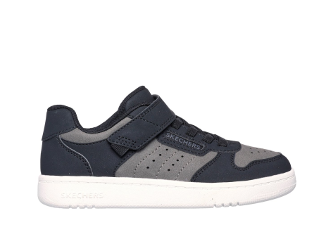 Der Skechers Quick Street Sneaker ist ein vielseitiger, bequemer Schuh für Jungen, der sich ideal für den Schulalltag und Freizeitaktivitäten eignet. Er verfügt über ein synthetisches Obermaterial, das pflegeleicht und maschinenwaschbar ist, was für eine einfache Reinigung sorgt. Der Schuh ist mit elastischen Schnürsenkeln und einem adaptiven Verschluss ausgestattet, der für einen sicheren und flexiblen Halt sorgt. Innen bietet der Sneaker eine gepolsterte Komfort-Innensohle, die den Fuß den ganzen Tag über unterstützt und für angenehme Dämpfung sorgt. Das Design ist sportlich und mit schönen Details versehen, die den Schuh modisch und gleichzeitig funktional machen. Die weiße Sohle kontrastiert perfekt mit dem dunklen Obermaterial in Schwarz- und Grautönen und verleiht dem Schuh einen klassischen, modernen Look. Durch seine Eigenschaften ist der Sneaker besonders gut geeignet für aktive Kinder, die einen robusten, leicht zu pflegenden Schuh suchen, der bei verschiedensten Aktivitäten getragen werden kann.