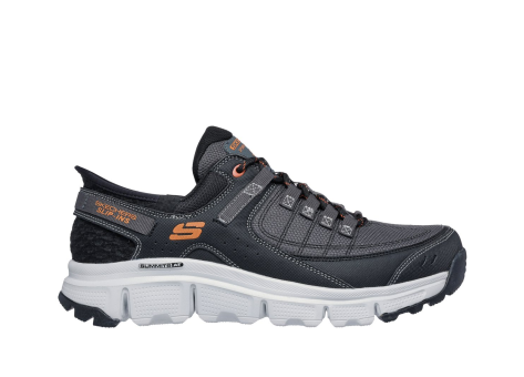 Der Skechers Summits AT ist ein robuster Slip-On Sneaker, der mit der innovativen Hands Free Slip-Ons® Technologie ausgestattet ist und sich durch hohen Tragekomfort und praktische Bedienung auszeichnet. Das Obermaterial besteht aus langlebigem Mesh mit zusätzlichen Synthetik-Overlays, was für Stabilität und Langlebigkeit sorgt. Die verstellbare Schnürung ermöglicht eine individuelle Anpassung an den Fuß. Im Inneren sorgt die gepolsterte Skechers Air-Cooled Memory Foam Komfort-Innensohle für angenehme Dämpfung und Belüftung, während das exklusive Skechers Fersenkissen (Heel Pillow) zusätzlichen Komfort speziell im Fersenbereich bietet. Die Zwischensohle ist hochflexibel und stoßdämpfend, was zu einem ermüdungsfreien Lauf beiträgt. Das Modell ist in einem modernen Grau mit Akzenten in Orange gehalten, was sportlich und gleichzeitig alltagstauglich wirkt. Der Schuh eignet sich ideal für Personen, die einen bequemen, stabilen und flexiblen Sneaker für den Alltag suchen, der gleichzeitig durch seine Hands Free Slip-On Funktion besonders komfortabel anzuziehen ist. Marke: Skechers.
