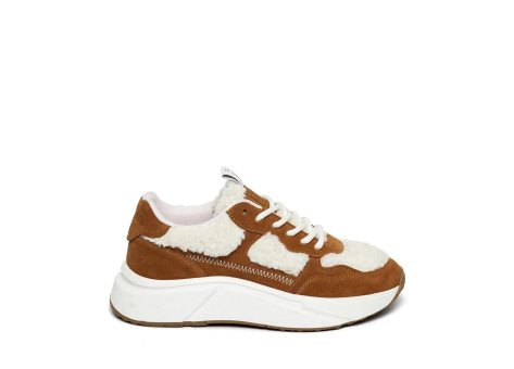 Der Steve Madden Starlyn Schuh präsentiert sich in einem creme- und cognacfärbigen Design und besteht aus synthetischem Obermaterial. Die Schnürung sorgt für einen sicheren Halt, während die etwa 5 cm hohe Plateau-Sohle dem Schuh einen modischen und zugleich komfortablen Auftritt verleiht. Das besonders weiche und flauschige Material-Detail auf dem Obermaterial fügt einen stylischen Akzent hinzu, der den Schuh zu einem auffälligen Fashion-Piece macht. Aufgrund seines Designs und der Materialien eignet sich der Schuh hervorragend für den Alltag und Casual-Looks, weniger für sportliche Aktivitäten. Es wird empfohlen, die übliche Größe zu wählen, um eine gute Passform zu gewährleisten. Steve Madden steht für trendige, zeitgemäße Designs, und dieser Schuh ist ein Beispiel dafür, wie Mode und Komfort kombiniert werden können. Insgesamt spricht der Starlyn vor allem modebewusste Träger an, die einen bequemen und zugleich angesagten Schuh für den Alltag suchen.