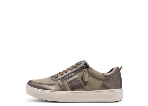 Der Tamaris COMFORT sportliche Schnürer für Damen präsentiert sich in einer eleganten braunen Farbkombination mit dem besonderen pewter Effekt. Dieses Modell, erhältlich in der Größe 41 EU, verbindet modisches Design mit hohem Tragekomfort. Die Schuhe sind mit einer attraktiven Kombination aus verschiedenen Materialien gefertigt, die für eine ansprechende Optik sorgen. Die Sohle ist sportlich gestaltet und bietet zugleich Halt und Bequemlichkeit im Alltag. Der Schuh verfügt über eine klassische Schnürung und einen seitlichen Reißverschluss, der das An- und Ausziehen erleichtert. Das Design zeigt sich schlicht, aber dennoch modisch, ideal für Damen, die einen bequemen Sneaker für tägliche Aktivitäten suchen. Markant ist zudem das dezente Branding und die praktische Schlaufe an der Ferse, welche den sportlichen Charakter unterstreicht. Die robuste Gummisohle sorgt für eine solide Bodenhaftung. Insgesamt ist dieser Tamaris Sneaker eine perfekte Mischung aus Stil und Komfort für moderne Frauen, die Wert auf sportive und trotzdem schicke Schuhe legen.