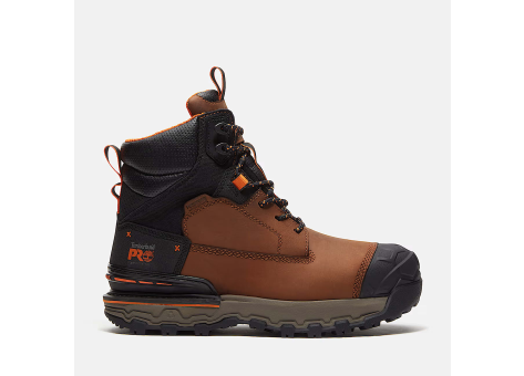 Der Timberland Boondock Ultralight Arbeitsstiefel ist das leichteste Modell der Boondock Kollektion, gefertigt aus vollnarbigem, wasserdichtem Premium Timberland® Leder kombiniert mit abriebfestem Ever-Guard™ Leder und TPU-Verstärkungen, die für hohe Strapazierfähigkeit sorgen. Eine wasserdichte, atmungsaktive Innenmembran schützt vor eindringendem Wasser und krankheitserregenden Stoffen. Er besitzt eine Composite-Sicherheitskappe, Schutz vor elektrischer Spannung und eine leichte, nicht abfärbende Allwetter-TPU-Laufsohle, die hitze-, öl-, rutsch- und abriebfest ist und in unterschiedlichen Klimazonen zuverlässige Traktion bietet. Das metallfreie Obermaterial verfügt über verstärkte Ösen, während das Futter aus recyceltem ReBOTL™ Material antimikrobiell behandelt ist für Geruchskontrolle und Feuchtigkeitsmanagement. Ein nichtmetallisches Gelenk sorgt für strukturelle Stabilität. Die Timberland PRO® 24/7+ Komforttechnologie reduziert Ermüdung durch Druckverteilung, unterstützt das Fußgewölbe und dämpft jeden Schritt. Die leichte HoverSpring™-Schaumstoff-Zwischensohle bietet Flexibilität, während das belüftete Anti-Fatigue-Fußbett aus Polyurethan für Klimaregulierung, Stoßdämpfung und Energierückgewinnung sorgt. Insgesamt ist dieser Stiefel besonders robust, bequem und eignet sich für anspruchsvolle Arbeitsumgebungen, die Schutz und Komfort erfordern.