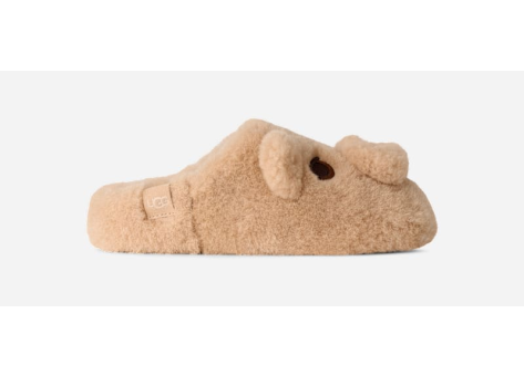 Der UGG Elea Pooch ist ein gemütlicher Slip-On Hausschuh, der Komfort und verspieltes Design vereint. Der Schuh besteht aus ultraweichem Lammfell, welches für ein angenehmes Tragegefühl sorgt, als würdest du im Pyjama auf der Couch entspannen. Besonders auffällig sind die niedlichen Hundestickereien und die detailreiche Gestaltung mit kleinen Ohren, die dem Schuh ein charmantes Aussehen verleihen. Die Außensohle ist aus flexiblem Formgummi gefertigt, was eine gute Stabilität und Rutschfestigkeit auf glatten Böden bietet. Dieses Modell eignet sich perfekt für die Nutzung im Innenbereich und vermittelt ein besonders warmes und kuscheliges Gefühl. Die Marke UGG steht für hochwertige, komfortable Hausschuhe mit charakteristischem Lammfellmaterial und stilvollen Designs.