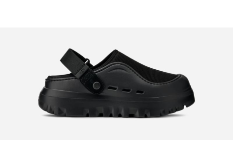 Der UGG PeakMod ist ein moderner, geformter Clog, der besonders für Streetwear-Looks entwickelt wurde. Das Obermaterial besteht aus atmungsaktivem, recyceltem Mesh-Textil in Kombination mit Synthetik, was eine optimale Luftzirkulation gewährleistet. Seitliche Perforierungen sorgen zusätzlich für Belüftung. Der verstellbare Fersenriemen aus Ripsband mit Klettverschluss kann nach vorne geklappt werden, was zusätzlichen Komfort und Anpassungsfähigkeit bietet. Die Innensohle ist aus Textil gefertigt und sorgt für angenehmes Tragegefühl. Die ultraleichte Außensohle wird aus nachhaltigem Zuckerrohr-EVA hergestellt, was für ein leichtes Laufgefühl sorgt, während die breite, strukturierte Laufsohle mit Profil für guten Halt auf verschiedenen Untergründen sorgt. Die runde Vorderpartie und die wuchtige Gestaltung der Silhouette machen den Schuh besonders auffällig und stylisch. Zusätzlich ist eine seitliche Logo-Prägung vorhanden, die das Design abrundet. Der UGG PeakMod verbindet Nachhaltigkeit mit modischem Design und hochwertiger Verarbeitung und eignet sich ideal für den urbanen Alltag und Freizeitaktivitäten.