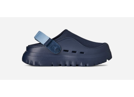 Der UGG PeakMod Clog ist ein moderner, geformter Clog, der sich perfekt für Streetwear-Looks eignet. Die geformte Silhouette mit voluminösen Dimensionen unterstützt ein individuelles Ausdrucksvermögen. Die ultraleichte Außensohle besteht aus Zuckerrohr-EVA, was für ein angenehmes Tragegefühl sorgt, während die Einlegesohle aus recyceltem Textil nachhaltige Elemente einbringt. Das Mesh-Obermaterial garantiert optimale Atmungsaktivität, sodass die Füße auch bei längeren Tragezeiten frisch bleiben. Der verstellbare und abnehmbare Fersenriemen kann bei Bedarf nach vorne geklappt werden, was zusätzliche Variabilität beim Tragen ermöglicht. Dies macht den Schuh vielseitig einsetzbar und anpassbar an unterschiedliche Tragebedürfnisse. Insgesamt ist der PeakMod ein stylischer, komfortabler und nachhaltiger Clog von UGG, der sich optimal für den Alltag eignet.