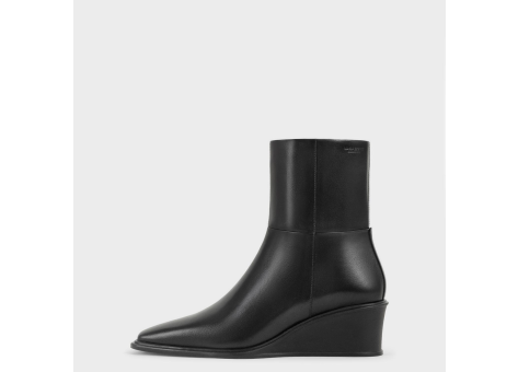 Die Vagabond Aino Stiefelette ist aus hochwertigem Leder gefertigt und besticht durch ihre saubere Verarbeitung und maximalen Tragekomfort. Sie ist mit einem seitlichen Reißverschluss ausgestattet, der schnelles und bequemes An- sowie Ausziehen ermöglicht. Die Stiefelette verfügt über eine eckige Schuhspitze und einen 5 cm hohen Keilabsatz, die ihr einen dezenten Retro-Look verleihen. Die Farbe ist schlichtes Schwarz, wodurch der Schuh vielseitig kombinierbar ist. Das Futter besteht aus Textil, während die Decksohle aus Leder gefertigt wurde. Die Laufsohle ist aus Gummi, was für guten Halt sorgt. Die Schafthöhe beträgt 17 cm, und das Gewicht des Schuhs liegt bei 460 Gramm. Diese Stiefelette ist ein modischer Hingucker, der Eleganz und Komfort verbindet.