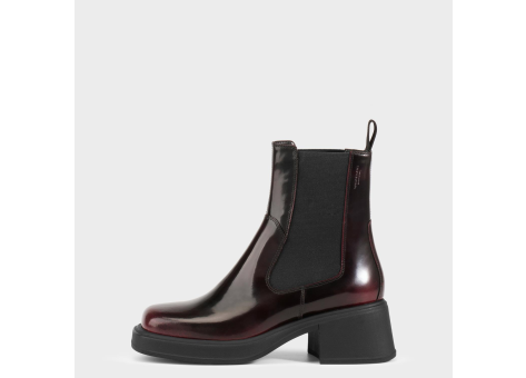 Der Vagabond Dorah Ankle Boot ist ein moderner Damenstiefel, der minimalistisches 90er-Jahre-Design mit einer klassischen Chelsea-Silhouette kombiniert. Er besteht aus poliertem, dunklem Leder und verfügt über eine eckige Zehenpartie sowie elastische Seitenteile für einen bequemen Sitz. Ein praktischer Schlupf-Bootstrap erleichtert das Anziehen. Der Blockabsatz ist 59 mm hoch und sorgt für zusätzliche Höhe bei gleichzeitiger Stabilität. Die Innensohle ist chromfrei gegerbt und unterstreicht damit das Engagement der Marke für nachhaltige und bewusste Herstellungsprozesse. Die dezente Prägung des Markenlogos rundet das Design ab. Insgesamt bietet der Dorah Ankle Boot einen eleganten Stil, der sich gut für den Alltag und formellere Gelegenheiten eignet.