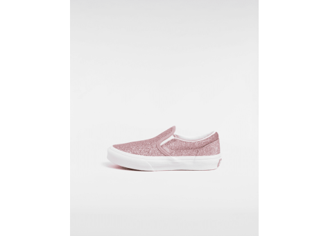 Der Vans Classic Slip-On stammt ursprünglich aus dem Jahr 1979 und wurde in Südkalifornien durch Skateboarder und BMX-Fahrer populär. Dieses Modell zeichnet sich durch seinen unverwechselbaren Streetstyle und seine Vielseitigkeit aus, wodurch es zu einem Symbol der Popkultur geworden ist. Der Schuh verfügt über gepolsterte, stützende Manschetten sowie elastische Seitenakzente, die für Komfort und Stabilität sorgen. Die charakteristische Gummilaufsohle in Waffel-Optik gewährleistet zudem eine zuverlässige Traktion. Das Obermaterial des gezeigten Modells besteht aus rosegoldenem Glitzer, was dem Schuh ein auffälliges und modernes Design verleiht. Der Classic Slip-On ist speziell für Jugendliche gedacht und ehrt mit seinem Design das Erbe dieser ikonischen Vans-Silhouette. Er ist ein Slip-On, der sowohl durch Komfort als auch durch seinen Stil besticht.
