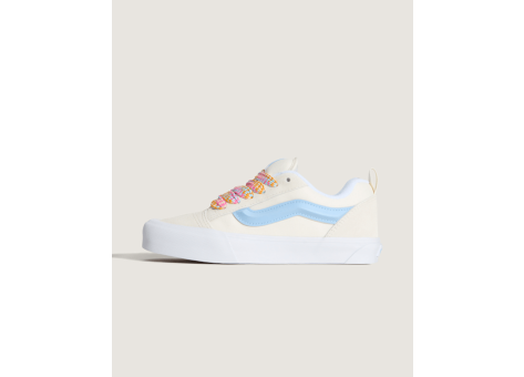Der Vans Knu Skool ist ein moderner Sneaker, der von den 90er Jahren inspiriert wurde und einen klassischen Vintage-Look mit zeitgemäßen Details verbindet. Der Schuh präsentiert sich mit einer gepolsterten Zunge und auffälligen 3D-Seitenstreifen, die an den Original Old Skool erinnern. Charakteristisch sind die breiten, übergroßen Schnürsenkel in mehreren Farben, die ihm einen echten Retro-Charme verleihen. Das Design setzt auf zweifarbige Akzente, die das Profil des Schuhs markant hervorheben. Dieses Modell ist eine Neuinterpretation des Old-Skool-Stils, die Komfort und Stil kombiniert und sowohl für Fans klassischer als auch moderner Sneaker eine interessante Wahl darstellt.