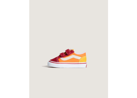 Der Vans Old Skool für Kleinkinder ist eine Neuinterpretation des ikonischen Sidestripe-Schuhs mit einer kinderfreundlichen Passform. Anstelle traditioneller Schnürsenkel verfügt dieser Low-Top-Schuh über doppelte Klettverschlüsse, die das An- und Ausziehen erleichtern und einen sicheren, bequemen Sitz gewährleisten. Das Obermaterial besteht aus robustem Synthetik, das für Langlebigkeit sorgt und gleichzeitig den klassischen Stil beibehält. Die sonnige Farbgebung verleiht dem Schuh einen coolen Retro-Look, der den Kultcharakter des Vans Old Skool unterstreicht. Dieser Schuh ist speziell für aktive Kinder konzipiert, die Komfort und einfache Handhabung schätzen. Die Kombination aus Funktionalität und einem zeitlosen Design macht ihn zum idealen Begleiter für kleine Abenteurer und macht das tägliche An- und Ausziehen zum Kinderspiel.