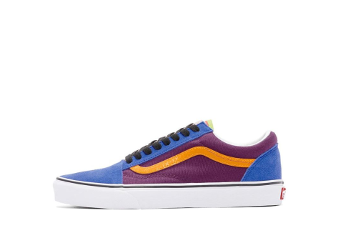 Der Vans Old Skool Mix & Match ist ein auffälliger Sneaker in den Farben Gelb und Blau mit violetten Akzenten. Er verfügt über das klassische Vans-Design mit der charakteristischen Seitenstreifen-Optik in einem kontrastierenden Gelb. Der Schuh hat ein robustes Obermaterial, das unter anderem aus Canvas und Suede besteht, was für Langlebigkeit und einen urbanen Look sorgt. Die flache Sohle ist aus Gummi gefertigt und bietet eine gute Griffigkeit dank des bekannten Waffelprofils. Dieses Modell steht für lässigen Streetstyle und ist besonders bei Skateboardern und Fans der Kultmarke Vans beliebt. Die Kombination der auffälligen Farben macht den Schuh zu einem Hingucker, der sich gut mit unterschiedlichen Casual-Outfits kombinieren lässt. Der niedrige Schnitt sorgt für Bewegungsfreiheit und Komfort im Alltag.