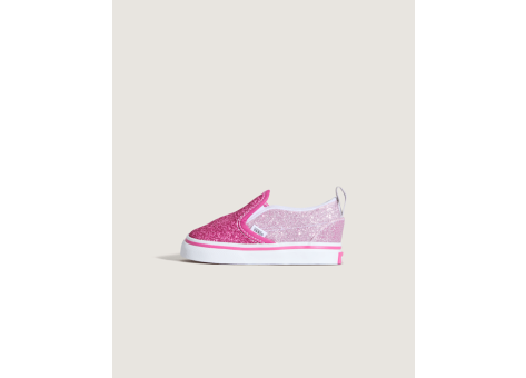 Der Vans Slip-On V ist eine speziell für Kleinkinder entwickelte Neuinterpretation des klassischen Vans Slip-On. Er zeichnet sich durch seitliche Klettverschlüsse und Fersenlaschen aus, die für einen besseren Sitz an kleinen Füßen sorgen und das An- und Ausziehen erheblich erleichtern. Das Obermaterial ist in einem einfarbigen, rosafarbenen Design mit einem attraktiven Glitzereffekt gehalten, was dem Schuh einen verspielten und ansprechenden Look verleiht. Der Schuh vereint den typischen Vans-Style mit praktischen Funktionen, die speziell auf die Bedürfnisse von Kleinkindern abgestimmt sind.