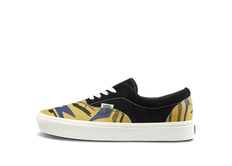 Der Vans UA ComfyCush Era LX ist ein Sneaker in Schwarz und Gelb mit einem auffälligen Muster an der Zehen- und Fersenpartie. Das Modell zeichnet sich durch seine klassische Vans Silhouette aus, die flach und niedrig geschnitten ist (low). Die Obermaterialien bestehen vorwiegend aus robustem Canvas, das für Atmungsaktivität sorgt. Der Schuh verfügt über die UltraCush™ Technologie, die für ein besonders bequemes, gedämpftes Tragegefühl sorgt und den Komfort den ganzen Tag über gewährleistet. Die Gummisohle ist vulkanisiert, was die Flexibilität und Haltbarkeit erhöht. Der Vans UA ComfyCush Era LX ist ein sportlich-lässiger Sneaker, der sich ideal für den Alltag und Casual-Looks eignet. Er kombiniert modischen Style mit funktionalem Komfort und ist eine Neuinterpretation eines Klassikers von Vans, geeignet für alle, die einen bequemen, trendigen Schuh suchen.