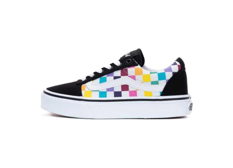 Der Vans Ward Party Checker ist ein Kinderschuh aus der bekannten Vans Marke. Er zeichnet sich durch ein farbenfrohes, kariertes Muster in leuchtenden Farben auf der Seite aus, das dem klassischen Vans-Design eine verspielte Note verleiht. Der Schuh hat eine niedrige Silhouette und ist besonders für den Alltag und Freizeitaktivitäten geeignet. Die robuste Gummisohle bietet Halt und Langlebigkeit, während das Obermaterial aus Textil und teilweise aus Wildleder oder Canvas gefertigt ist, was für eine gute Kombination aus Komfort und Stabilität sorgt. Die Schnürung ermöglicht eine individuelle Anpassung und einen sicheren Sitz. Das Design passt hervorragend zu einem lässigen, jungen Look und eignet sich sowohl für Schule als auch für Freizeit. Dieser Vans Ward verbindet klassisches Streetwear-Design mit kindgerechtem Tragekomfort und trendigem Stil.