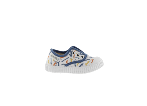 Der Victoria Elastische Leinwand Baby 1915 Print ist ein Unisex-Kinderschuh aus bedrucktem Canvas-Material. Das Design ist inspiriert vom klassischen Tennis-Stil von 1915 und kommt mit einem zentralen elastischen Band, das das An- und Ausziehen erleichtert und für einen sicheren Halt sorgt. Der Schuh verfügt über eine weiße, robuste Gummisohle mit geriffeltem Profil, die guten Grip bietet. Die Oberfläche ist mit einem bunten, sportlich-inspirierten Muster versehen, das für Kinder ansprechend gestaltet ist. Die Verarbeitung ist leicht und bequem, ideal für den Alltag von Kleinkindern. Das Modell passt durch seinen elastischen Einsatz besonders gut für kleine Füße, die sich noch im Wachstum befinden. Die Marke Victoria ist bekannt für sportlich-klassische Schuhe mit einem trendigen, aber gleichzeitig zeitlosen Look.